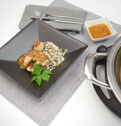 - Draai de balletjes, plaats het deksel terug en laat afhankelijk van het formaat ca. 8 minuten bakken.