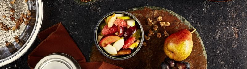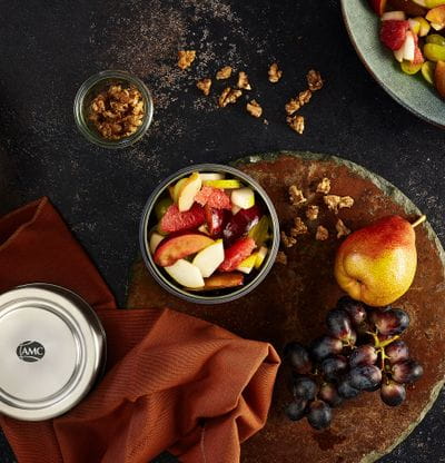 Sadno solato lahko enostavno odnesemo s sabo v AMC TO-GO posodi za piknik ali zajtrk.