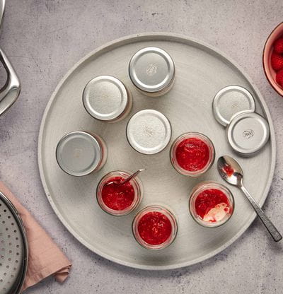 - Po končani fermentaciji previdno odstranimo kozarce iz Softiera vstavka. Jogurt hladimo vsaj 1 uro.