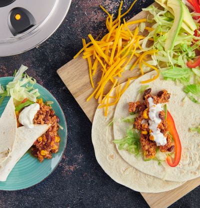 - Assaisonner la farce et la servir avec les tortillas et les autres ingrédients.