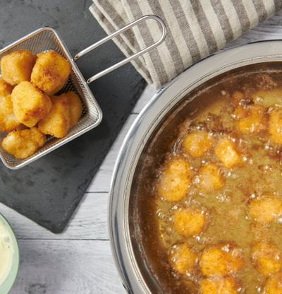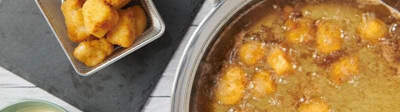 - Frire le reste des morceaux de poisson de la même manière, en augmentant légèrement le réglage de la plaque de cuisson si nécessaire. Servir les nuggets de préférence chauds avec la sauce.