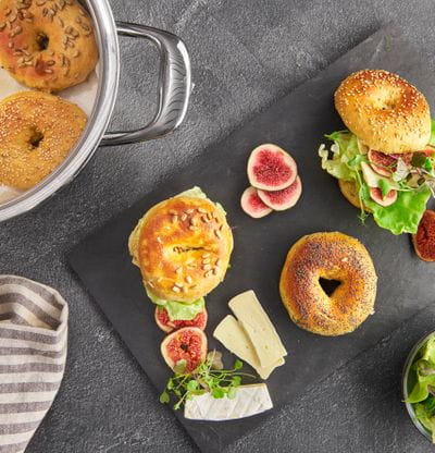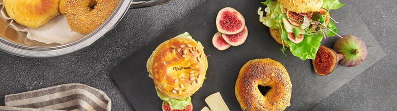 Les bagels sont meilleurs frais. Selon les goûts, accompagner d’ingrédients comme par exemple différentes feuilles de salade, du brie, des figues, de la mozzarella, des tomates, du basilique, de la charcuterie de volaille, du concombre ou du fromage frais.