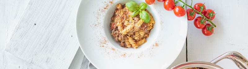 - Éplucher hacher finement les oignons, verser dans la casserole. Faire chauffer la casserole à feu vif jusqu'à la fenêtre Viandes, mettre sur feu doux, ajouter la viande et faire revenir. Ajouter les fusili, les tomates et le bouillon et mélanger. Mettre le Secuquick softline et verrouiller.