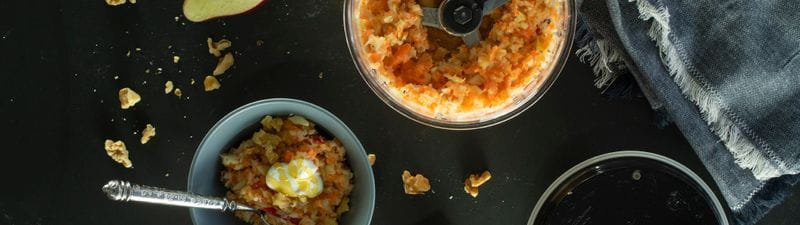 - Hak de walnoten in de Quick Cut fijn en verwijder ze.