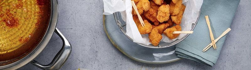 - Serveer de nuggets zo heet mogelijk met saus naar eigen keuze.