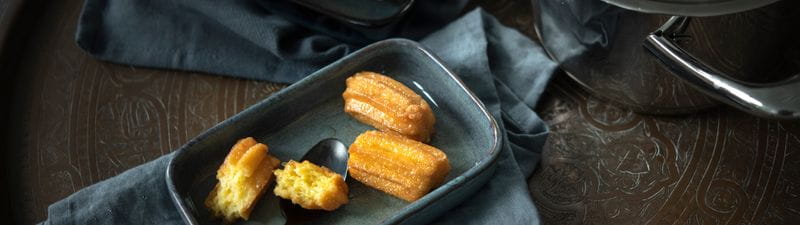 - Frituur tot het draaipunt is bereikt. Haal de deksel eraf, draai om en frituur verder tot het gebak goudbruin is. Haal het eruit en laat het ± 3-4 minuten weken in de siroop.