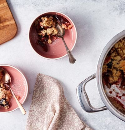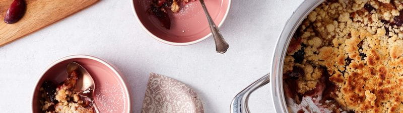 Obmeň crumble podľa sezónneho ovocia, napríklad s jablkami (v tom prípade vynechaj škrob), marhuľami, rebarborou alebo bobuľovým ovocím.