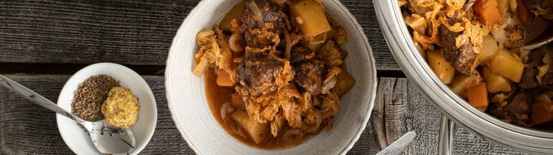 - Po koncu kuhanja v loncu znižamo tlak, odstranimo Secuquick softline pokrovko in jagnječji golaž začinimo po okusu.