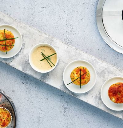 - Lonec postavimo na Navigenio in segrevamo na stopnji 6 do področja za pečenje, znižamo na stopnjo 2 in vstavimo Softiera vstavek z modelčki za mafine. Pokrijemo in pečemo 20 minut.