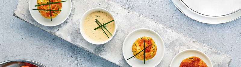 Postrežemo s svežim jogurtovim zeliščnim namazom ali pikantnim česnovim namazom z naribano limonino lupinico.