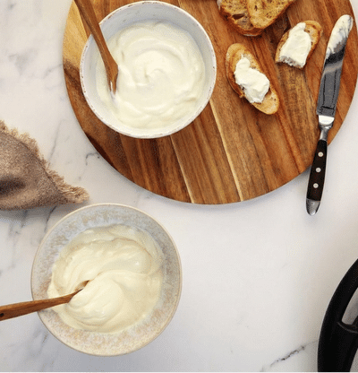 - V kombi posodi zmešamo mleko, smetano in jogurt.