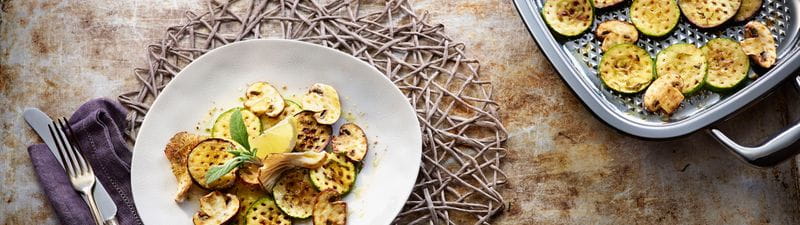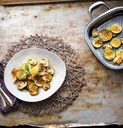 - Kabağı ve patlıcanları yıkayın ve dilim dilim kesin. Sebzeyi ve mantarları marinasyon malzemesiyle karıştırın ve yak. 1 saat dinlenmeye bırakın.