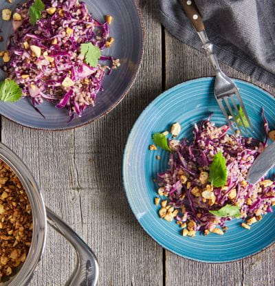 - Zencefili soyun ve ince ince rendeleyin, elma sirkesi, susam yağı ve bulgurla birlikte kırmızı lahananın içine koyun. Salatayı en az 60 dakika bekletin.